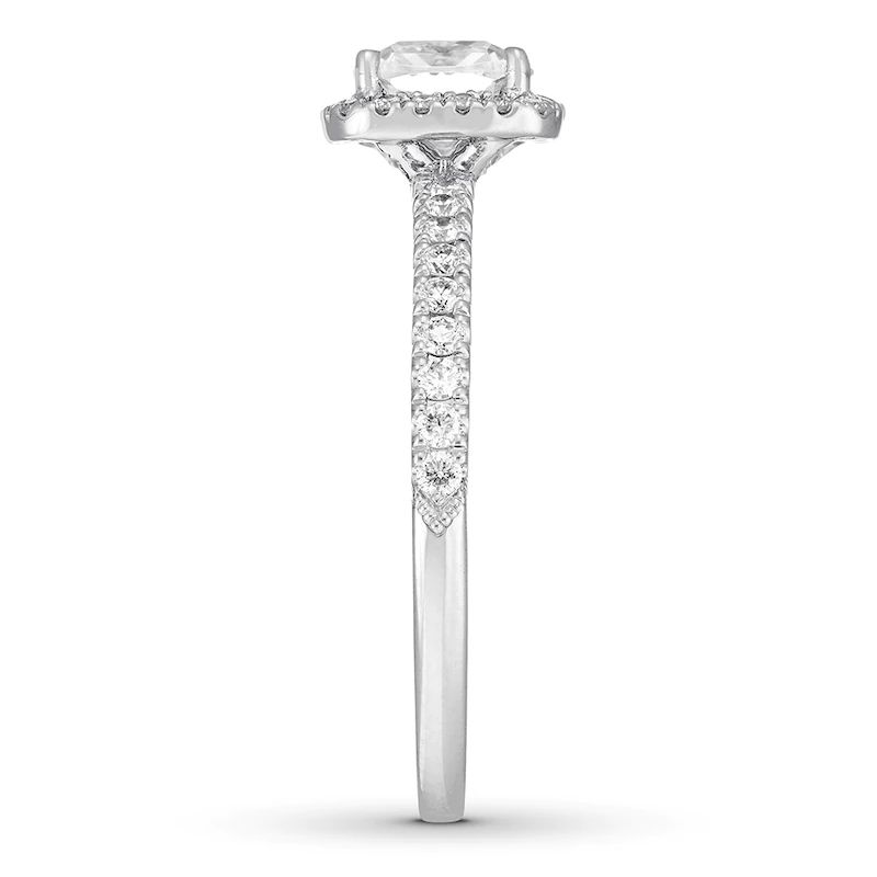 Boasting an impressive 2 carats in total diamond weight, this eye-catching diamond engagement ring is fahsioned in 10K white gold and features stunning round diamonds forming its pear-shaped center. Additional round diamonds halo the center and beam down the band with baguette diamonds in between. From the Now & Forever? bridal collection.