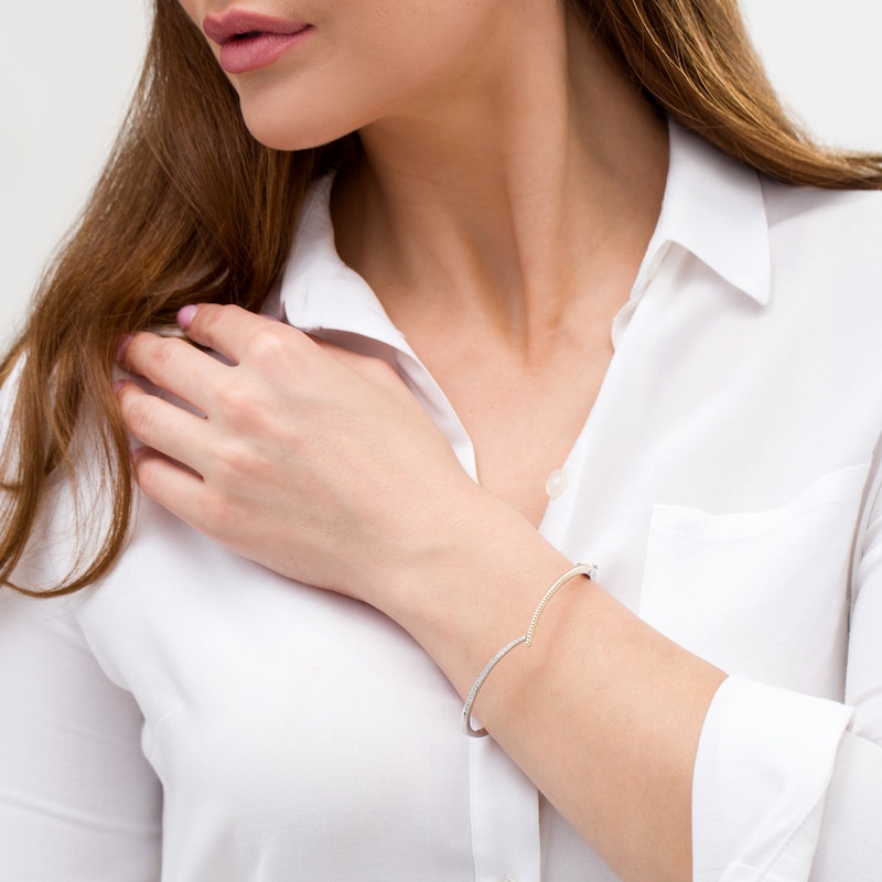 • Wonder Woman Collection 1/4 CT. T.W. Diamond Lasso Hinged Bangle in Sterling Silver and 10K Gold