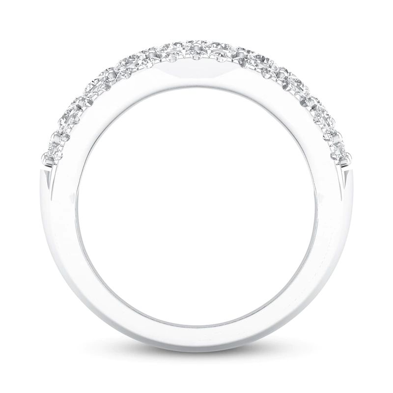 A stunning way to show your love and add sparkle to her finger stack, this exquisite lab-created diamond ring for her features enchanting rows of twinkling diamonds along and inside the classic 14K white gold band. The ring has a total lab-created diamond weight of 2 carats. From the Lab-Created Diamonds by KAY collection.