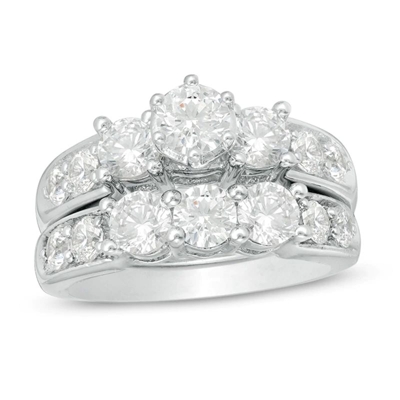3 CT. T.W. Diamond Past Present Future? Bridal Set in 14K White Gold