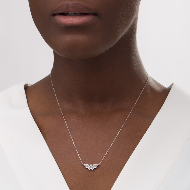 Wonder Woman Collection 1/6 CT. T.W. Diamond Symbol Necklace in Sterling Silver – 18"
