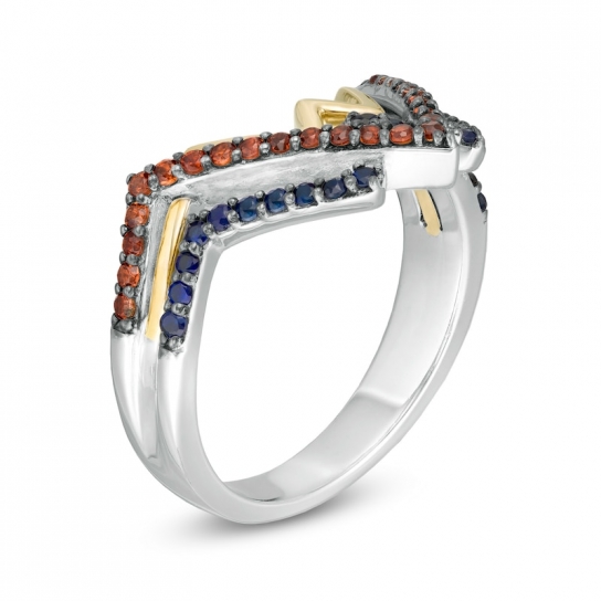 With stunning color, this distinctive gemstone ring from the Wonder Woman? Collection delivers valiant design. Fashioned in sterling silver and warm 10K gold, this dynamic choice showcases the classic "WW" logo in eye-catching ribbons of regal red garnets, bright blue sapphires, and polished yellow gold. Buffed to a brilliant luster, this silver-shank style is destined to be admired. The Wonder Woman? Collection of fine jewelry at Zales is inspired by one of the most beloved and iconic DC? Super Heroes of all time. Embodying strength and grace, Wonder Woman? is a modern-day warrior. This exclusive fine jewelry collection inspires you to wear your strength, confidence and power. This ring is available in size 7 only. Sterling silver rings cannot be resized after purchase.